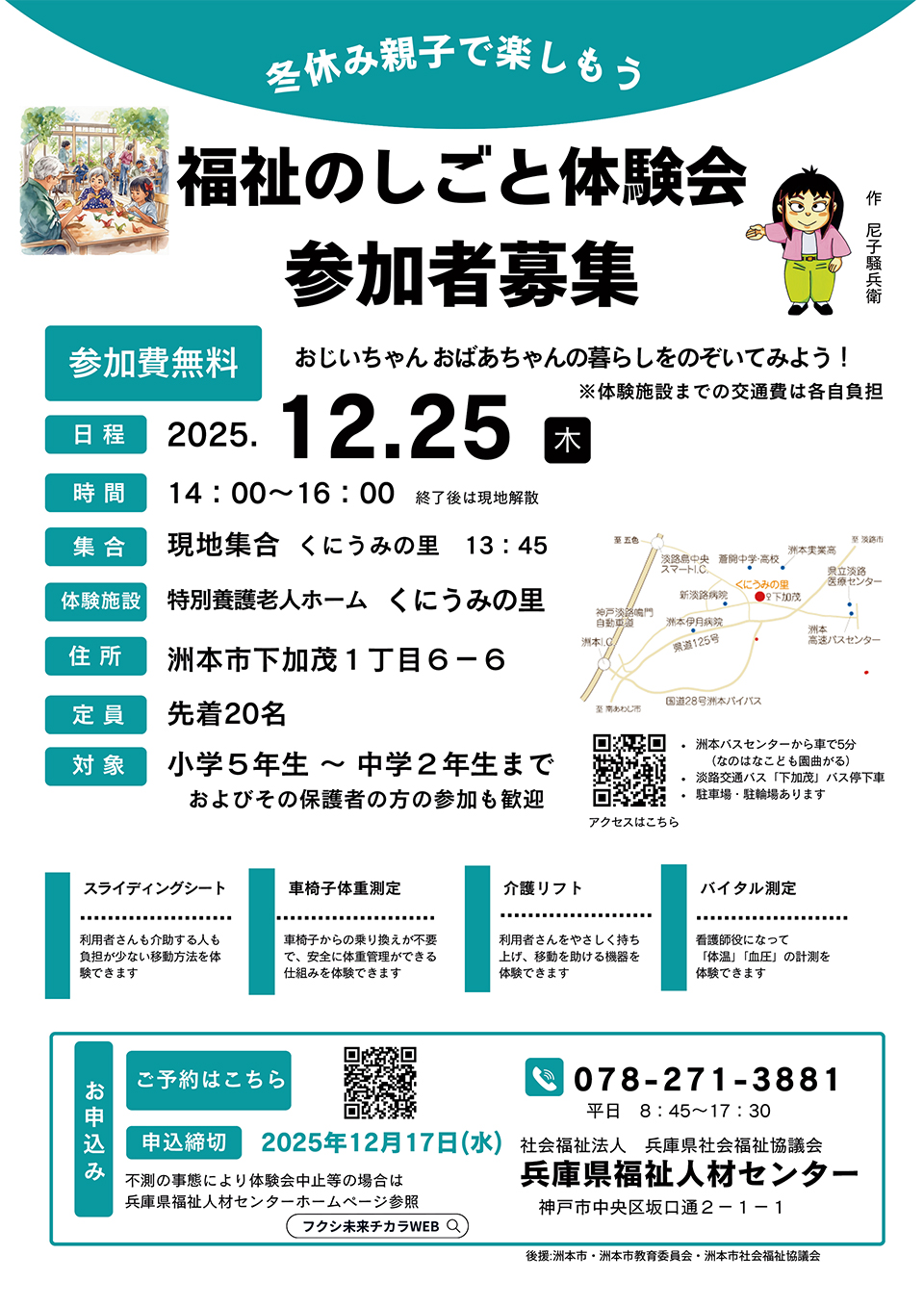 https://e-ve.event-form.jp/event/116450/r7taiken1225 または、チラシにある二次元コードからお申込みください。 |