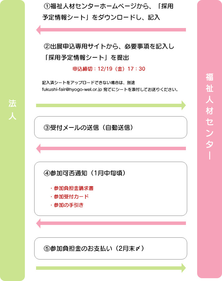 開催要項をご確認の上、①「採用予定情報シート」をダウンロード + ②出展申込専用サイトから、必要事項を記入し「採用予定情報シート」を提出 してください。